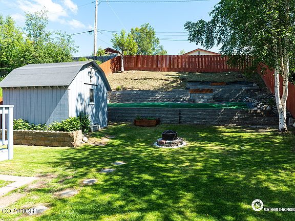 Pride of ownership around every corner in this beautiful home!!! Soaring ceilings upstairs with an open flow kitchen/living/dining area. Movable kitchen island makes the space super flexible! Deck off the dining room overlooks the beautifully landscaped backyard; privacy fencing throughout, retaining walls, large shed, fire pit, AND an outdoor roasting oven! Entertainer's paradise!Two bedrooms and a full bath complete the top level. Downstairs boasts a sprawling master suite with a large laundry room. Quiet neighborhood in a great central location between Lake Otis & Elmore. This one is a MUST SEE!!