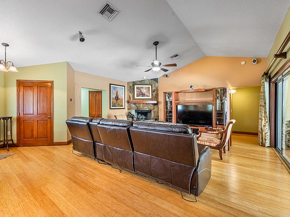 Country living with all modern comforts. Bring your horses or fly in onto the available airstrip. .The property sits on 5 groomed acres. It offers Two Master Bedrooms with en-suite bathrooms,third bedroom and a third full bathroom. A well appointed kitchen with all high end stainless steel appliances. Cozy living room giving way to an ample lanais perfect for entertaining. Salt water pool is a ''Tropical Oasis'' with Cave like structure housing a bar and a jacuzzi.The Free Standing building in the back houses a Professional Recording Studio (electronics not included), an Efficiency and large storage room. The Barn has two stalls and a tack room. Great opportunity for personal use or as an Airbnb that could bring extra income with the rental of the efficiency and horse boarding. The entire perimeter of the property is fenced