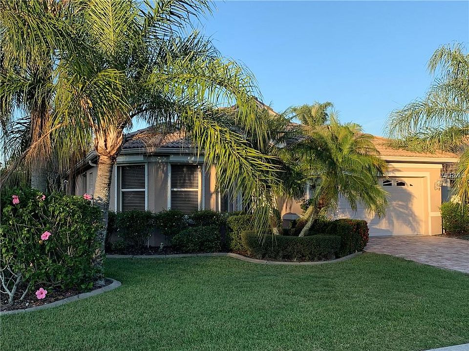 Lakefront home in the Ashley Oaks section of desirable Tara Golf and Country Club community. This 2 bedroom en suite plus den / library / office and 2 bathroom home features a gracious entry with decorative beveled glass above and beveled glass french doors to the pool patio, wood & tile flooring in the main living areas, crown molding, attached 2 car garage with abundant built-in storage, electric hurricane shutters/clear panel shutters, and a solar heated, saltwater pool overlooking a large tranquil lake. Membership in Tara Golf and Country Club is required & this home conveys with a Class "A" golf membership. The community features, golf, fitness center, tennis courts, pool & spa and lovely clubhouse with full service dining. Easy to show and sell.
