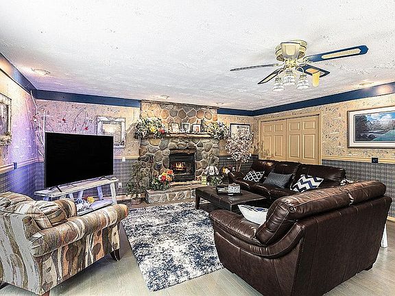 Nonsmoker, very clean. large deck, ponds, both bathrooms upgraded tile, ceramic floors, ceramic tile shower walls, glass shower doors. large family room with wood burning fireplace. kitchen and laundry room ceramic tile floors, living room has a beautiful stone fireplace with an electric life like fire. Natural gas hot water heat. Air conditioners in upstairs bedrooms. Air conditioning in family room. Family room has a wood burning fireplace. Large wooden outdoor utility storage shed. Large lot with a lot of trees. Approx. lot size on one side is 300' and the other side is around 225' lot width is around 120' on the road. This is a beautiful and well-maintained home. More pictures if you need them.