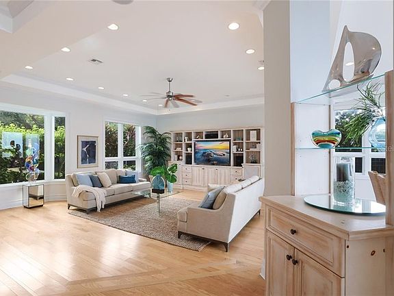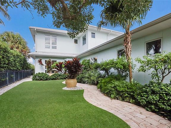Everything you have ever envisioned for a private Gulf-front haven is epitomized in this gorgeous Siesta Key estate. Exceeding discerning tastes and built to the highest Florida Green Building Coalition standards, this home is majestically poised 14.2' above sea level to appreciate rolling waves gently lapping against the rocks and sandy shoreline below. From the moment of entry, nearly every vantage point of this residence grants views out to the azure horizon. Surrounded by an iron gate, lush landscaping and vibrant foliage, the property grants an impression as a secure oasis that reveals unbelievable openness with light-filled spaces once inside. Soaring ceilings, wood flooring, picture windows and expansive sliders fuse the lavish interior comforts with the natural beauty of outdoors for blended living as you transition onto decks and patios. Entertaining and efficiency on the main level finds the living room, dining room and gourmet kitchen as a shared space. Magnificent two-tone custom cabinetry, an L-shaped island, granite countertops, decorative backsplash, elevated breakfast bar, two sinks, glass cooktop and built-in ovens will delight the family chef. Two guest bedrooms, a full bath and powder bath, and laundry room complete the first floor. The master suite and an additional bedroom or den with full bath occupy the second floor for a luxurious retreat. The master features a spacious sitting area with walls of glass and private decks to enjoy the outdoors, a customized walk-in closet, and a spa-like en-suite bath with walk-in shower and soaking tub. The additional room boasts wood floors, a deck and full bath, making it an ideal office space or hobby room. Below, the secluded lagoon pool is just a pathway to the guesthouse, complete with a full kitchen, two bedrooms and outdoor patio. A deck and staircase lead you to the beach for daily strolls along the shore of your personal paradise.