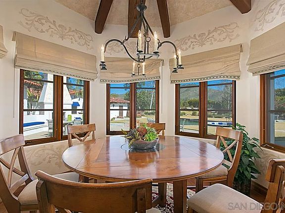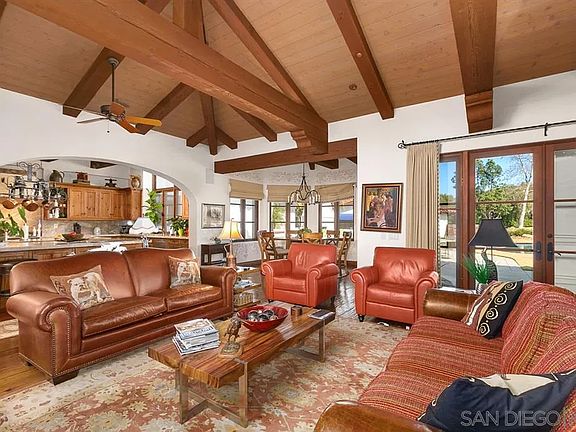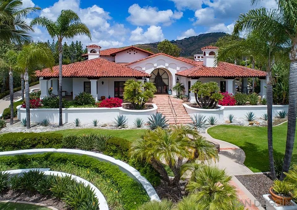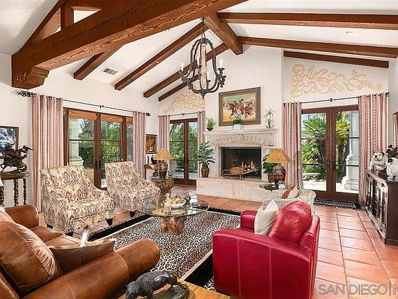 PLEASE SHOW Hacienda with a rare gift of great style situated on two acres in Rancho La Cima. Large stone fireplace with mantles carved by hand, decorative hand-wrought iron work, hand painted wood beams & highlighted ceilings with a subtle color palette designs. Hacienda encompassing a 4 BR main house and a 4,200 sq.ft. “Car Collector’s Garage” and guest house. Outdoor living with two fireplaces sitting/dining areas, fantastic pool with step down fire pit.