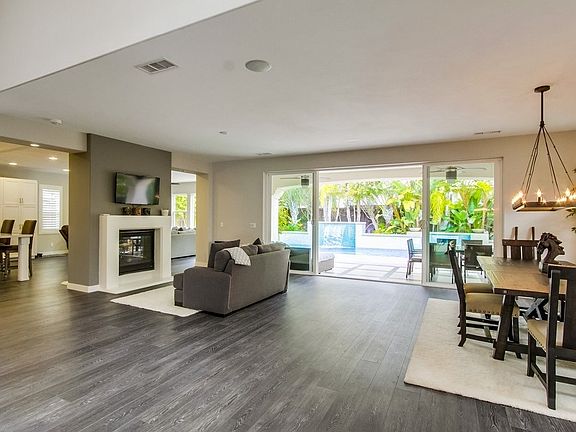 Stunning remodeled La Costa Oaks Home. Court yard entry w/custom gate, large open concept, soaring ceilings, custom lighting, highly upgraded kitchen with large social island, dual sided fireplace, surround sound, expansive glass sliding doors leading to private tropical oasis yard with large pool/spa, water falls, fire pit, outdoor loggia with living and dinging and BBQ island. PAID FOR SOLAR for house and pool! Bed and bathroom down, bonus loft, dedicated office, ENCINTIAS SCHOOLS! VERY LOW MELLO ROOS!
