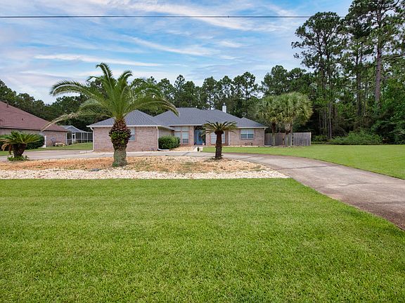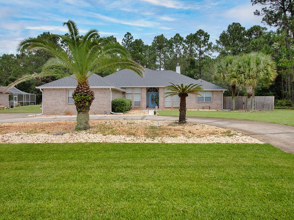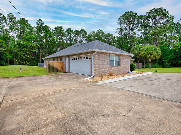 Fully Furnished Move in ready home. Lawn care and pest control included. Beautifully updated 4 BD 2 BA brick home in very quiet area of Holley by the Sea. This gorgeous home sits on an over a half an acre, wooded corner lot with a circular driveway, side entry garage, mature palm trees, and easy access to golf at Hidden Creek. There is ''green space'' behind and to the right for increased privacy. Fully fenced yard. Interior dog fencing in sun room which includes A/C and heating. Large indoor/outdoor doggie door. Room for multiple cars and boat trailer. Engage with your guests from the kitchen that looks out to the family room and features granite countertops with hop up bar, stainless appliances (including smooth surface cooktop, built-in wall oven and microwave). The large family room is light and bright with ceramic tile and double sided gas fireplace. The Master suite has large sitting area, dual walk in closets, double vanities, jetted garden tub, and a separate tile shower. Enjoy your morning coffee in the spacious breakfast nook or in the fully enclosed tile sunroom. HBTS recreational center usage inclusive of pools, gym, pickle-ball, tennis and dock. Would consider a lease shorter than 1 year based on application. Pets are welcome upon approval. $300 non-refundable pet deposit. Credit and background check. Gulf Breeze Zoo - 9 min Navarre Beach - 12 min Gulf Breeze Hospital - 25min Pensacola Beach - 26 min Fort Walton Beach - 34 min Downtown Pensacola - 35 min University of West Florida - 36 min Eglin Air Force Base - 44 min Destin - 45 min Naval Air Station Pensacola - 1 hour Owners will pay for lawn maintenance. up to 2 dogs acceptable apon approval. $300 non refundable pet fee.