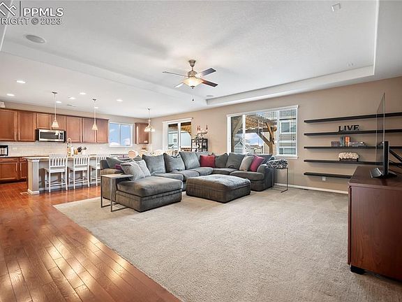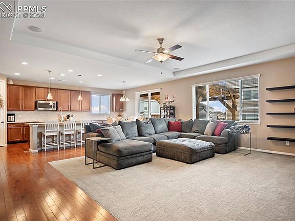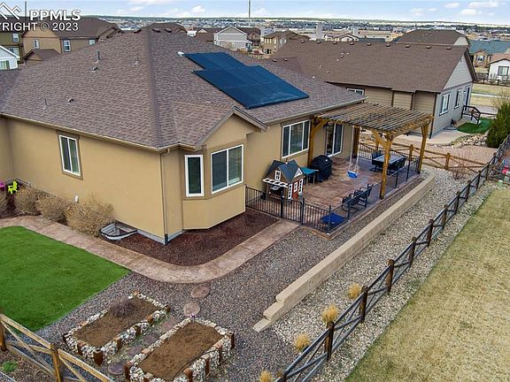 If you're searching for a home that offers endless possibilities and luxurious comfort, this stunning 6 bed, 4 bath property is the one! With over 4600 sq ft of living space, a bright and open floor plan filled with natural light, and an attached 3 car garage - it's easy to see why this home checks all the boxes. The main level features a formal living room, main level office & master retreat. Enjoy preparing meals in the kitchen complete with stainless steel appliances & granite counters. Step outside onto the custom patio & enjoy some outside time in your fenced back yard - perfect for entertaining during warm summer days. When you want to relax indoors or host family gatherings in style, head down to your finished basement featuring great room with a wet bar plus 2 bathrooms & 3 bedrooms making it a wonderful multi-purpose space. Plus you'll love being just minutes away from parks, schools and shopping! This well maintained property has everything you need - don't miss out on this amazing opportunity! This neighborhood also features include an award winning school-Banning Lewis Ranch Academy, over 75 acres of parks and trails, two pools, exercise gym, pickleball courts, tennis courts and recreation center.