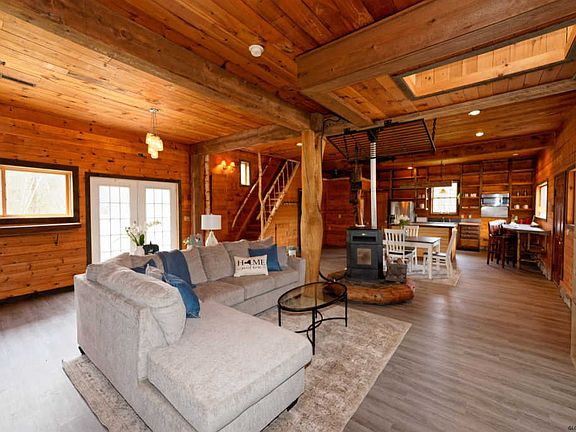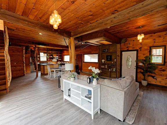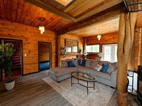 One of a kind custom crafted contemporary 3 bed 2 bath home on 1 acre is just 18 years young. Enjoy the exposed beams and other unique wood workincluding knotty pine ceilings and white birch handrails and brand new vynl flooring! Right on the Mulleyville trail system, camping & Fishing.Right to Farm Zoning! A detached carport w/poured concrete floors for additional storage, Shared well with neighboring property!