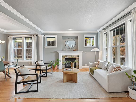 This meticulously maintained Craftsman-style home offers a perfect blend of old-world charm and modern convenience. With attention to detail throughout, including high ceilings throughout the main floor, this residence also features a versatile fourth bedroom that can easily function as a home office to suit your lifestyle. The open-concept layout creates a warm atmosphere, while the kitchen has stainless steel appliances, dual-oven, an island, pantry, and ample storage. The primary bedroom boasts recessed ceilings, a spa-like ensuite bath with a soaking tub, and a walk-in closet. Two additional bedrooms, a bathroom, and a laundry room complete the second floor, ensuring space for everyone. Enjoy outdoor living overlooking the peaceful and fully fenced yard and raised garden beds. Conveniently located near parks, food carts, a farmers market, schools, and shopping, this home offers both convenience and tranquility.