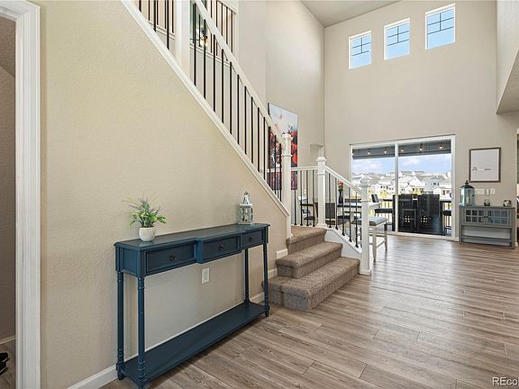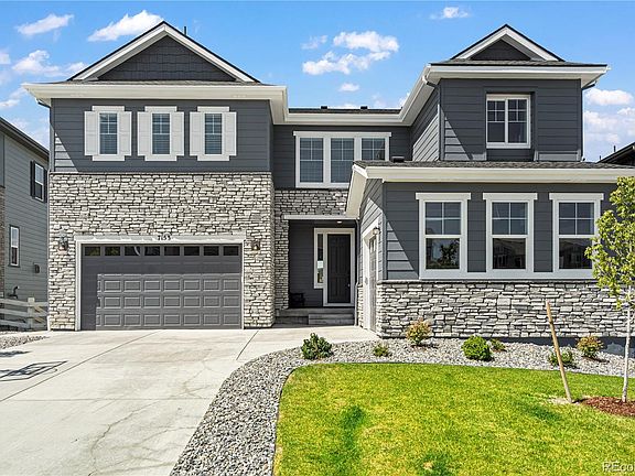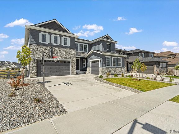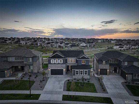 PRICE REDUCED $50k! This is your opportunity to own luxury living in this stunning, totally customized home located in the prestigious Southshore community of Aurora. Premium lot backing to greenbelt, offering unmatched style & comfort. Before you enter, note the new basketball hoop, spacious front porch & dual garage. Inside, elegant wood-grain laminate flooring flows throughout the main level. Adjacent to the entryway is an office/flex space & powder bath. The open floor plan leads into the gourmet kitchen, featuring an oversized island with granite countertops, double self-cleaning convection ovens, built-in microwave, tile backsplash, pantry & custom accent walls. The open flow between the kitchen, cozy eat-in area & spacious family room with accent walls is perfect for entertaining. A guest bedroom on the main level with attached bath offers convenience & privacy. The remodeled walk-out basement is an entertainer’s dream with a custom exposed brick wall, home theater wired for surround sound, chic bar with included barstools & large flex space/storage. Step outside to a backyard retreat with $45,000+ in landscaping upgrades, including a real wood firepit. On the second level, enjoy a versatile loft & two ensuite bedrooms. The primary suite is a true oasis with accent walls & a luxurious 5-piece bathroom, featuring a free-standing tub. With over $115,000 in recent upgrades, this home is a masterpiece of design & functionality. The view is enhanced by the walking trail behind the home. Superb HOA amenities at only $30 per month. Two clubhouses, two pools, reservoir, dog park, play ground and so much more are all within .25 miles. Want to see more? Take a virtual tour! Copy and paste this link into your browser: https://www.media.homes/virtualtour/c413c051-9e8a-467b-af1a-b843a347f5b4. Don't miss out on experiencing every detail of this incredible home! WELCOME HOME!