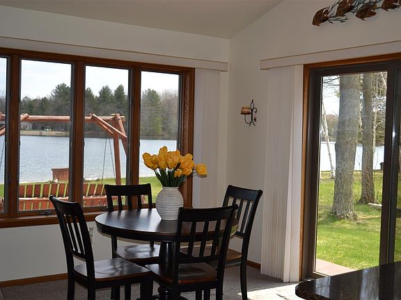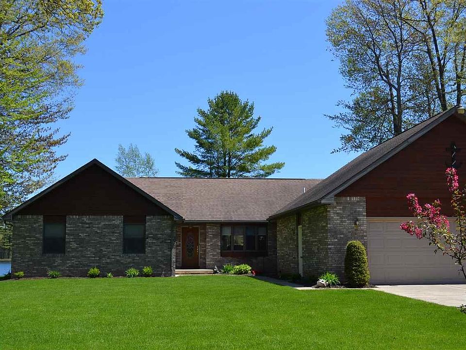 Walk in the front door and get that "WOW" affect with a panoramic wooded view of of beautiful Cedar Lake from living room, dining room and kitchen. Home is in excellent condition from the outside to the interior, starting with a new kitchen with oak cabinets, Quartz counter tops, tiled back splash, center island, new appliances, Nice open floor plan with large living room, new carpeting thru out the home, master suite has patio doors which lead to lakeside deck, bathroom also updated in 2014 has a separate shower, jet tub, new vanity.Two car attached garage w/opener, storage shed 12 x 10, concrete drive, nicely landscaped with under ground sprinkler system to maintain the beautiful grounds. This property has an assumable mtg to qualified buyers.