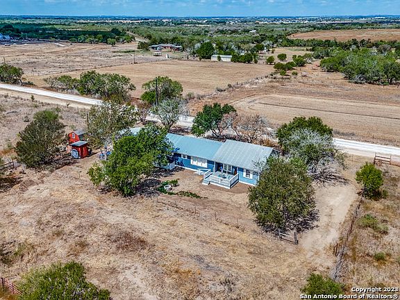 Wonderful ranch style home with metal roof, situated on one acre, completely updated with gorgeous private views! Sitting on a private road, just a short drive from San Antonio or Seguin, this home has recently been updated with new hard wood floors throughout, updated bathrooms, gorgeous new kitchen, new quartz counters, all new stainless appliances, 5 burner gas cooktop, stainless refrigerator and farm sink. Oversized deck in back! New plumbing under house, new hot water heater and oversized laundry room with sink. Large workshop with electric and AC. Country living at it's best!