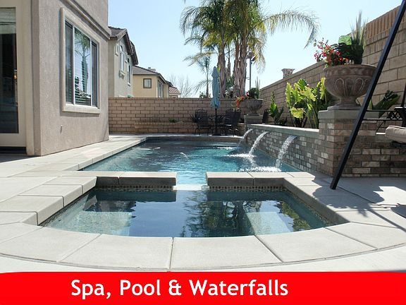 BEAUTIFUL POOL HOME AT END OF CUL-DE-SAC! This light & bright 2723 square foot home features 4 bedrooms (all upstairs), 3 bathrooms, formal living room with soaring volume ceiling, formal living room, upper level bonus room, family room and spacious eat-in kitchen. The recently built salt-water pool & spa are the centerpiece of your compact, easy maintenance and private yard. Enjoy lounging in the shallow 'reef' pool sitting area or ducking under the pool's waterfalls during your swim or relax in the heated built-in spa. The kitchen's layout is perfect for meal prep with plenty of counter space, a work island, double-ovens and easy care Corian counters. The master bedroom suite features a double-door entrance, two large closets, separate shower and soaking tub. Each of the three guest bedrooms has a walk-in closet and the shared hall bath features dual sinks. The 3-car garage has plenty of built-ins and tons of storage. There is even a gated space for RV. Agent: Michael J. O'Connor, RealtorOConnor@aol.com or cellphone 951-847-4883