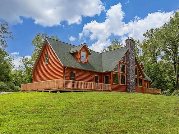 Someone's dream home awaits them! This beautiful quarter log home is nestled right outside of the town of DuQuoin. The K&H Construction built home is surrounded by trees and sitting up on a hill has a very private setting. You can see wild life of all sorts and go hunting or fishing in your back yard. The pond is stocked with bass, bluegill and catfish. The house has an open floor plan in the main level with 25 ft vaulted ceiling in the livingroom and a gorgeous fireplace. The kitchen has custom hickory cabinets with granite countertops. A giant master bedroom with a large walk in closet and private bath with walk in shower on the main level. The loft area over looks the livingroom and is perfect sitting area with two bedrooms and a full bath. The basement is ready to be made into your own. Plenty of space to create what fits your family with laundry, two bedrooms and an option for a full bath with plumbing already installed . 2 1/2 car attached garage along with a 30 x 60 pole barn so you wont run out of room. Enjoy a 12x32 covered patio or the large wrap around decks on each side. Options to keep a 35 ft indoor batting cage in the pole barn and play basketball on the concrete poured pad. Dont miss out on this log home! Call to schedule your showing!