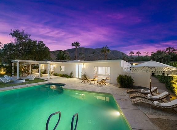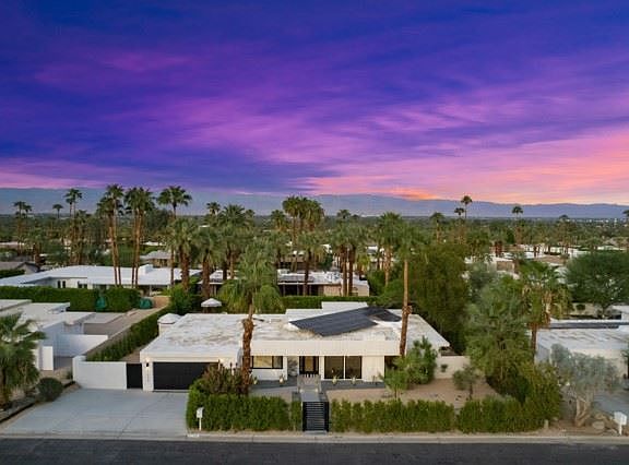 Welcome home to your fully remodeled and reimagined Mid-Century masterpiece! This stunningly renovated home sits on a quiet street in the coveted Magnesia Falls Cove, an idyllic, serene neighborhood in Rancho Mirage. Enter into a spacious open-concept living room and enjoy the serenity of your surroundings in front of a floor to ceiling fireplace centered on a wall of glass with spectacular mountain views. The high-end finishes were thoughtfully selected by a top designer to keep the Mid-Century feel with all the modern amenities of a smart home. The kitchen has been totally reimagined with custom cabinetry, new stainless-steel appliances, oversized swell pendants, terrazzo-style quartz countertops and a custom wood accent. The great room is surrounded by windows for a sun-lit indoor/outdoor vibe characteristic of mid-century modern living. All of this provides a grand space perfect for entertaining! The master suite features a remodeled walk-in closet with custom cabinetry and a fully remodeled spa-like master bathroom with double custom vanity, designer tile and a customizable LED anti-fog mirror. The two spacious guest rooms share a remodeled bathroom with a soaking tub. The master suite and great room open up to a resort-like backyard that is a reimagined desert paradise with a gas BBQ, fire pit, herb garden and plenty of space to lounge poolside. Custom security gates provide a private entrance into your personal oasis. This house is the definition of move-in ready!
