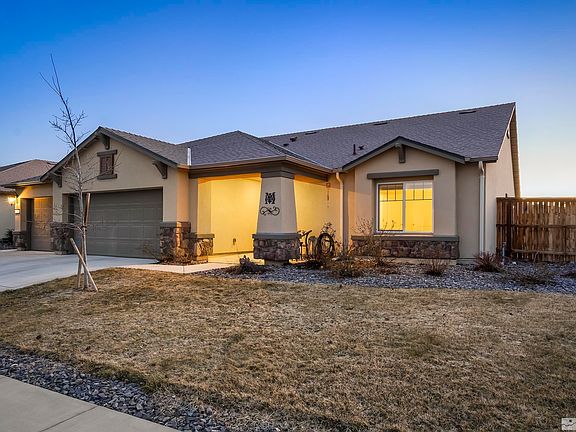 Set on an oversized lot with beautiful mountain views, this inviting single-level home offers a spacious floorplan with four bedrooms, two full bathrooms and a great room designed for entertaining! The kitchen is the heart of the home and features an extended island with breakfast bar, perfect for casual dining. Attractive cabinetry with soft close drawers provides space for all of your culinary supplies and kitchen appliances. Tile flooring throughout most of the home offers easy care., The three car garage provides plenty of space for vehicles, recreational equipment or even a workbench for home projects, with overhead grids included for additional storage. Enjoy summer BBQ's with friends in the private backyard, with ample room for a vegetable garden and a place to play. The large storage shed is ideal for organizing yard supplies and equipment. Great location in a newer neighborhood with easy access to schools, shopping, local events in Reno and year-round recreation at Lake Tahoe!
