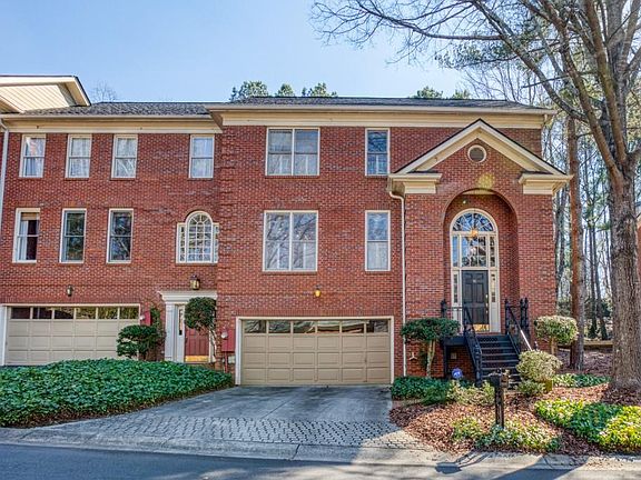 Beautiful All Brick End Unit Townhome in the Charming Enclave of the Sought After Gated Community of Wyngate at Spalding! Located in a prime Sandy Springs location, this townhome is nestled in a picturesque setting with lovely landscaping and is situated in a quiet back section of the neighborhood. Elegant three-story entrance foyer welcomes you into the home. The main level features spacious fireside living room with wet bar, updated kitchen with white cabinetry, farm sink, quartz countertops, stainless steel appliances, breakfast nook and desk, hardwood floors, recessed lighting, and separate dining room. Updated half bath. Walk out to bright, vaulted sunroom and out the French doors to patio overlooking an expansive, private backyard with lush landscaping. Upper level includes an oversized owner's suite with recessed windows, private bath with double vanity, separate shower, jetted tub, walk-in closet and guest bedroom with bath. Fabulous lower level has flex room with custom built-ins that can be used as office, media room or potential third bedroom and a full updated bath. Tons of closet space and storage in this unit. 2 car garage has an extra storage room and also has custom built-ins for additional storage. Home has plantation shutters. Wyngate has Pool, tennis courts and Pickleball! Fantastic location convenient to shopping, dining, schools, City Springs, parks , Chattahoochee River and interstates! Welcome Home!