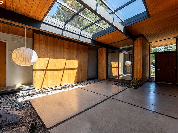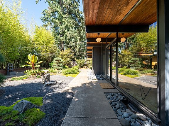 "Pursuing order and universals in architecture, modernism utilized new materials and advanced technology and rejected old, traditional, historical ideas and styles, and ornamentation. Modernism emphasized function, simplicity, and rationality, and created new forms of expression with a new aesthetic." A concept that's stood the test of time, with Bob Rummer's mid century designs a great example of its staying power. Here is an incredible opportunity to own a coveted Rummer, *and* gain instant equity. Recently appraised at $1M, this home delivers clean lines, timeless architecture, and meticulous craftsmanship. Magazine-worthy atrium and classic Rummer layout, with a larger single level floor plan and attached two car garage with plenty of storage. Custom, hand hewn cabinetry throughout. An abundance of natural light pours into every room. Open concept main living with new exterior windows. Tongue & groove vaulted ceilings, clever built ins, modern finishes. Custom utility area with Fire Clay tile. Pendant lamp imported from Norway, among other meticulous design moments. Built on a crawlspace (rare!). Fresh paint. New carpet. Membrane roof checks out. Japanese-inspired landscaping with weather controlled irrigation. Commuting convenience, and a wooded park at the dead end street. Fanno trails also near. Tucked into a row of Rummers, this home is remarkable. 11 minutes to Nike campus. Come see.
