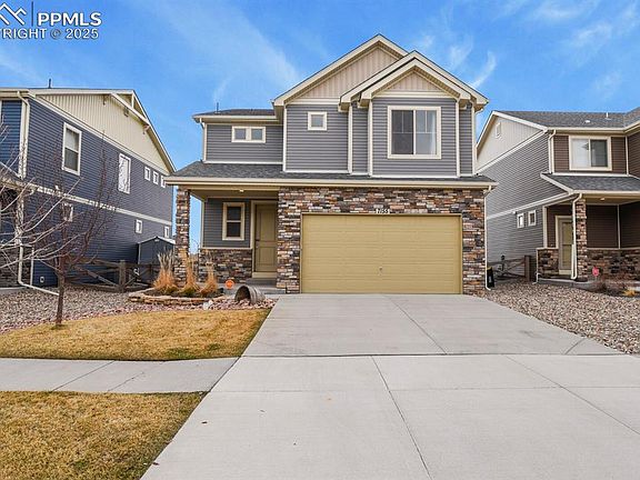 WELCOME HOME! This beautiful house is waiting for you to make it your HOME! The main floor features an open, inviting space with large windows that let in the natural light. Kitchen has a center island, lots of cabinets for plenty of storage, stainless steel appliances and a pantry. The back has a beautiful patio, is xeriscaped and backs to open space making it feel quiet and peaceful. Upstairs is the laundry room, 2 bedrooms, the primary bedroom and a full main bathroom. The primary bedroom has a 5 piece bathroom and walk in closet. You will also have use of all the amenities that Banning Lewis has to offer ... hiking trails, pool, clubhouse and lots of parks. Come see this home soon because it won't last!