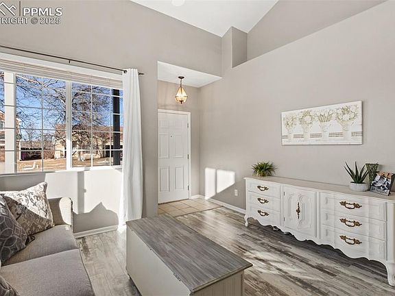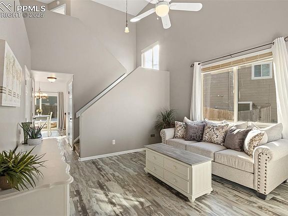 Springs Ranch Charmer! As You Enter the Home, You’re Greeted by a Soaring 2 Story Vaulted Ceiling in the Inviting Living Room! As You Make Your Way Through the Main Level, You Will Find an Open Concept Kitchen, Dining Area, and Family Room Perfect for Entertaining! The Kitchen Boasts Ample Counter Space, Stainless Steel Appliances, and Pantry ~ The Family Room Serves up a Gas Fireplace and Built-ins Perfect for Displaying Your Favorite Treasures ~ the Wall of Windows Provide Tons of Natural Light! A Convenient Powder Room and Spacious Storage Closet Complete this Floor! Upstairs Plays Host to Three Bedrooms, Two Full Bathrooms and Laundry Space! You Will Love the Primary Bedroom with a Beautiful En Suite Bathroom with Dual Vanities and a Large Soaking Tub/Shower! The Sprawling Backyard with Large Patio is Perfect for Outdoor Fun on those Beautiful Colorado Days! Luxury Vinyl Flooring Throughout the Home ~ Low Maintenance Xeriscape Front Yard ~ Ceiling Fans ~ Sprinkler System (As-Is, Homeowner has never used it) ~ Walk-in Closets ~ Air Conditioning ~ Conveniently Located to Military Installations ~ Close to Shopping ~ Medical ~ Parks ~ D49 Schools ~ Welcome Home!
