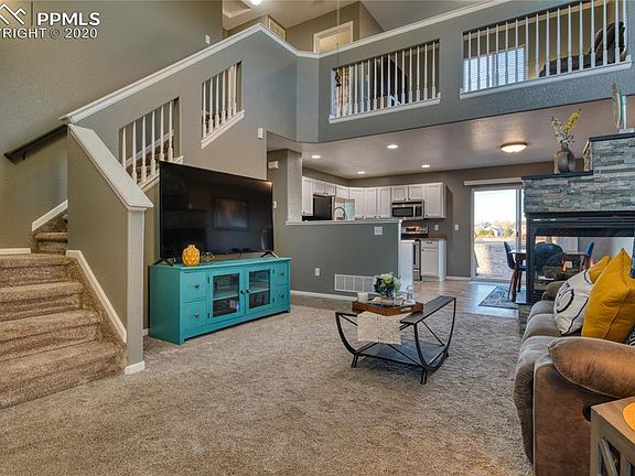 This is the updated home you have been looking for. Just minutes away from Fort Carson and I-25, food and shopping. This home has brand new interior paint, vaulted ceilings and tons of Natural light. The newly updated 2-sided fireplace in the living room and dinning room is absolutely gorgeous. The main level master bedroom has a beautiful updated shower and large master closet. The upstairs has 2 bedrooms a beautiful bathroom and a large loft area. The yard is fully landscaped with a fenced back yard. The large unfinished basement has plenty of room for you to make it your own. Do not miss out on this home!!!