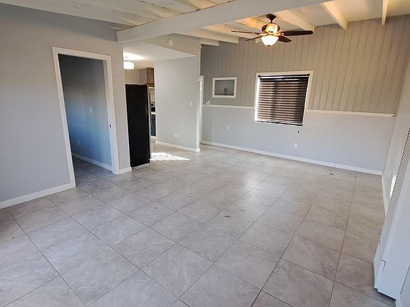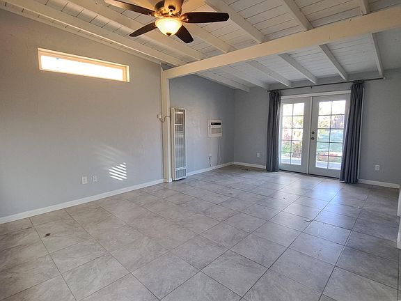 The dirt road makes you feel like you're in the country...but you're right in the middle of town! This 2 bedroom, 1 bath home located in Yucca Valley is totally secure! The property is completely fenced with cute desert landscaping in the front and a huge backyard with a covered patio. Walk in to an area for your coats to the left and washer dryer hook ups on the right. The living room is huge and sunny with double doors leading right out to the patio. A wall heater will keep you warm all winter and a wall A/C will keep you cool in the summer. If you like to cook, you will love this home! The kitchen is spacious with tile counters, beautiful backsplash and stainless steel appliances. The bedrooms are cozy with plenty of closet space and ceiling fans.