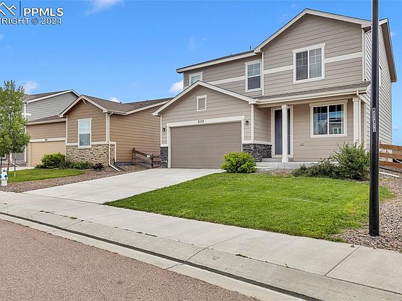 Welcome to an exquisite property that perfectly balances elegance and comfort. This stunning home boasts three generously sized bedrooms, including a versatile loft that offers a captivating view of the staircase. With tall ceilings and large windows throughout, natural light floods every corner, creating an inviting and airy atmosphere. The gourmet kitchen is stunning, featuring stainless steel appliances, granite countertops, a spacious island, and tall cabinets, providing ample storage and prep space. The expansive lot offers endless possibilities for outdoor living and entertaining. Conveniently located near Peterson and Schriever Air Force Bases, this home is perfect for those seeking proximity to work while enjoying a peaceful residential setting. Don't miss the chance to make this remarkable property your new home.