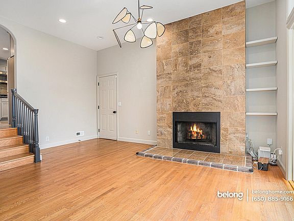 Multiple living areas provide flexibility for relaxing, entertaining, or working from home. Stone-faced fireplaces add a gorgeous focal point to the interiors, while wide-plank wood floors and modern recessed lighting create a clean, timeless feel throughout. You'll enjoy cooking in a well-equipped kitchen that features sleek countertops, stainless steel appliances, ample cabinet storage, and windows that bring in natural light and glimpses of the treetops beyond.