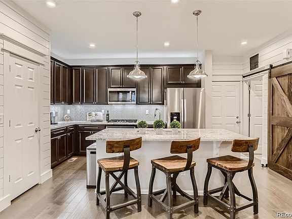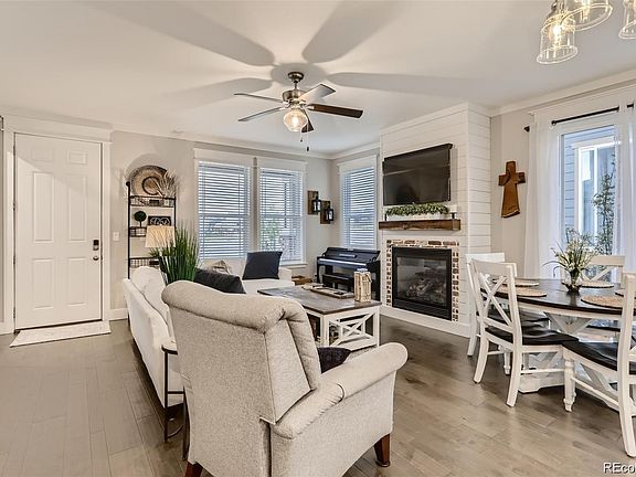 Great Townhouse located in Castle Pines. Professionally cleaned. Convenient to highway access, parks, trails, shopping. Engineered hardwood flooring, tankless hot water heater, accent walls, open floorpan and electric vehicle charging outlet in garage. Yard includes a wood deck and a dog run with artificial turf. Interior freshly painted and brand new carpet!