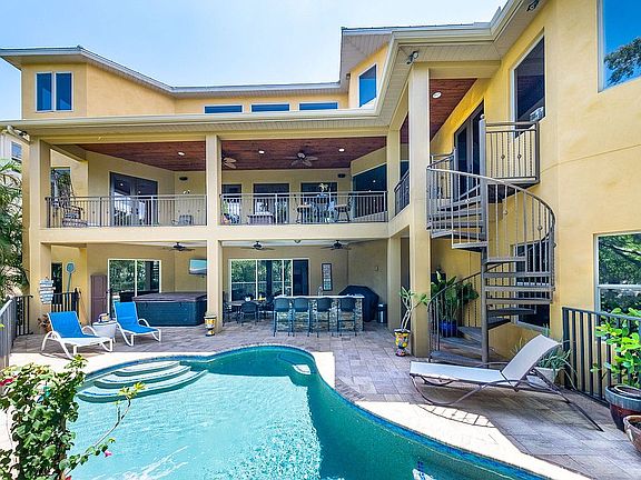 Tropical paradise living awaits you in this stunning, well maintained, executive coastal home located in the exclusive gated community of Hawks Harbor in Bradenton. This home boasts over 5,000 sf of living space including 4 bedrooms (2 en suite), 3 full bathrooms and 1 half bathroom. No shortage of upgrades to be found in this home including but not limited to marble floors; high end, exotic granite counter tops; state of the art Sonos home sound system; Vantage system smart house throughout the home; fireplace and wet bar with wine cooler and a gourmet chef kitchen to die for including upgraded high end appliances and natural gas. A three story elevator will give you convenient access to all levels of your home as well as the convenience of laundry facilities on the main and upper level. Enjoy amazing tropical breezes and views of private lush tropical foliage from balconies off the home as well as a beautiful patio, partially covered in the rear of the home, which features a pool, and therapeutic spa and outdoor kitchen. For the boating enthusiast there is a private dock with a covered boat lift and a 2 jet ski floating dock, on the property with a 5 minute direct access to Sarasota Bay. A 6+ car underground garage featuring plenty of extra storage space and also maintains an air conditioned bonus room. The location can't be beat with short driving distances to Downtown Sarasota, Bradenton-Sarasota Airport and the beautiful beaches of Anna Maria Island. Please call for your private showing.