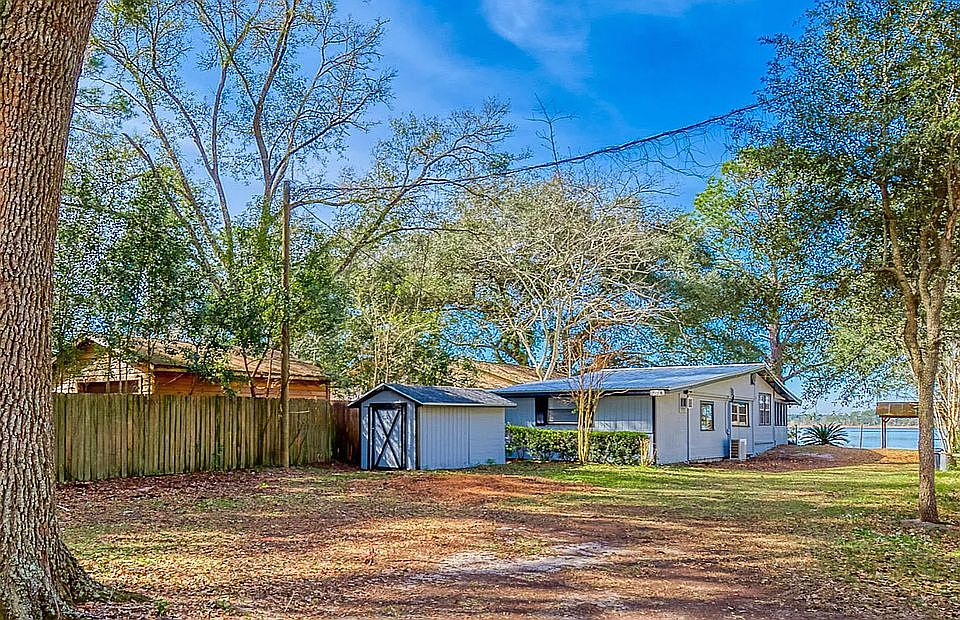 This charming cottage sits on a secluded privacy fenced half acre lot under lots of shade trees to enjoy the breeze from the private lake right from the backyard. This beautiful 2 bedrooms, 1 bath includes a washer, dryer, stainless steel refrigerator and glass top stove. Outside includes a storage shed, screened porch view of the sunsets and wildlife and a pavilion in the backyard for barbecues . This country cottage was completely updated with a new roof, new energy-efficient mini split HVAC unit, new luxury laminate flooring and carpet, fresh paint and a new septic tank system with drain fill and a new water softer filtration system.