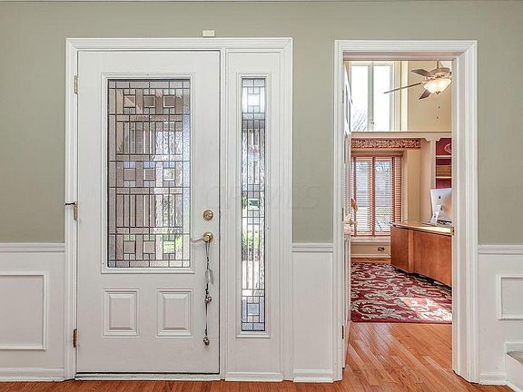 Park-like setting on a private cul-de-sac lot with walkout lower level. Koi pond, stone patio, deck, she shed, and the privacy of mature trees. Enjoy beautiful views year round from the 4 season enclosed porch. You will love the updated kitchen and baths. Rich hardwood floors, granite tops, updated cabinets, new appliances, and lighting in the east-facing kitchen. Heated floors and custom glasswork add a touch luxury to this master bath. The master suite includes a private sitting room. Custom built-ins and a vaulted ceiling highlight the private home office. Tankless hot water and a finished walkout lower level with full bath add exceptional value to this hidden gem. 15 minutes to Old Worthington, Dublin's Bridge Park, Clintonville and more.