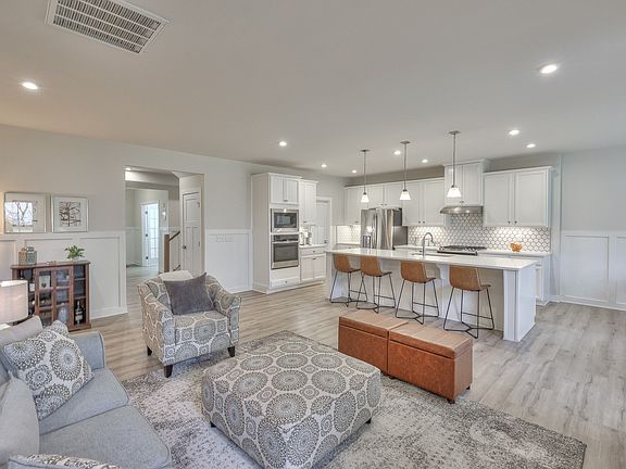 Welcome to Falls Grove. This exquisite home is designed for luxurious living with main-level comfort. The main level features an office with French doors, providing a functional workspace. The inviting great room which seamlessly connected to the gourmet kitchen. The kitchen with a stylish island is a focal point for socializing and entertaining. A dinette adjacent to the kitchen offers flexible space, perfect for various occasions and gatherings. The main-level owner's suite is a sanctuary of luxury. With a tray ceiling and a sitting area, it provides a tranquil escape. The double vanity bath and the walk-in closet offers ample storage. Upstairs, a loft area adds versatility to the living space. Three generously sized bedrooms for family members or guests, and another full bath ensures convenience and privacy. A private backyard, surrounded by trees and fenced creates a peaceful oasis. The patio enhances the potential for outdoor enjoyment, for quiet relaxation or lively gatherings.