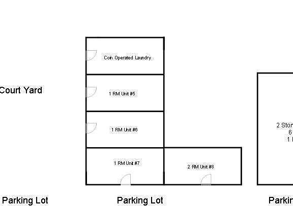 Income producing property. This property includes multiple streams of income. 9 efficiency units, coin operated laundry units plus a 2 story home with 1 car attached garage, 5 bedrooms, and 1 bath. Unit 1B current rents for $550. House currently rents for $900. Units 1-8 currently rent from $600-675