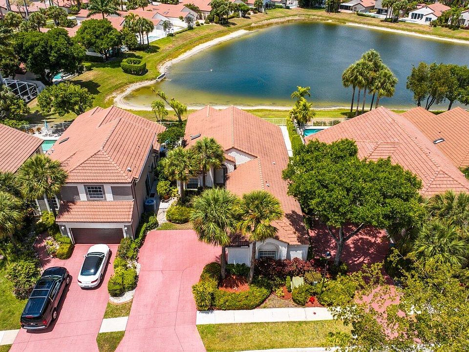 Impeccable Pool & Lake Front one story Mediterranean Single Family Home! Step into the Foyer a your eyes see the high ceilings, Open & Bright Living Areas and the Picturesque Views! This Harmonious Floor plan offers a Formal Living & Dining Rooms that step out to your Pool Lanai. Enjoy a Beautiful Custom Eat-In kitchen with Granite Counters & Back Splash and Stainless Steel Appliances! Main bedroom suite is spacious and has a Newly Remodeled Luxurious Bathroom w/ Soaking tub & Stepdown shower, 2 closets, Slider to your Heated Pool & Patios. The Guest Bath is Updated, 2nd Bdrm is over sized and has plenty of closet space & 3rd room does NOT have a closet and being used as a den in addition to living room. A Short Walk to the Country Club and houses of Worship! Accordion Shutters throughout