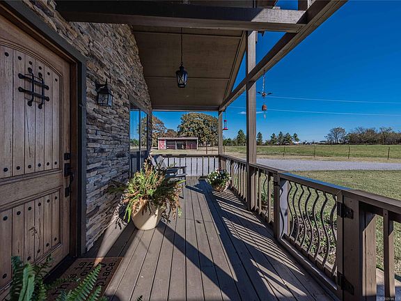 27 Ac m/l fenced, w/amazing home on paved road, w/covered porches, custom open plan, 4 bed, office, 2 /2 Ba pullman, living w/vaulted, beamed ceiling & den w/wb FP, kitchen, granite, w/butler pantry, island/eating bar, blt-in desk, MB soaker tub & shower, safe room, firepit, 2 ponds, dry weather creek, shop (40x40) 3 door, w/elec/water, concrete flr w/10x30 insulated for dog kennel, dog run, 3 stall horse loafing shed w/tack rm, wooded w/ducks, deer, turkey, area (planted for wildlife), & pasture.