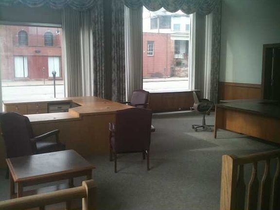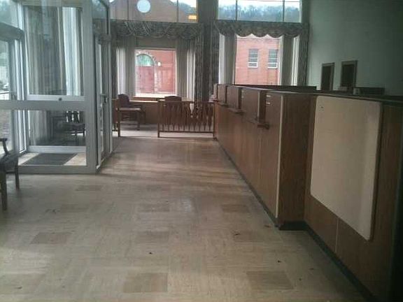 Bank building has many uses. The wide open floor plan allows plenty of light; this would make a great office building. Drive-thru window. Paved and striped lot on corner parcel near heart of town.