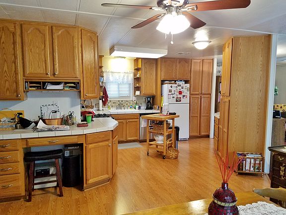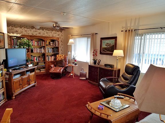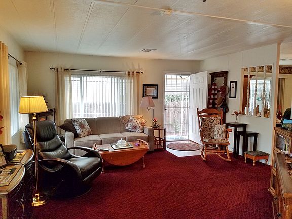 This is a beautiful home in 55+ Royal Palms community. 2 bedroom, 2 bath move-in ready home and seller will provide 1yr home warranty with purchase. Home features dual-pane windows, laminate flooring, carpet, fans throughout, new toilets, mirrored closet doors in master bedroom, new hardware, walk-in shower in master bath, vertical blinds throughout, security doors, and a completely refurbished kitchen featuring pull-out shelves. There is a large back yard with fruit trees and an 8’x12’ almost-new shed with power and the home has relatively new vinyl lap siding in addition to being recently re-leveled. Serial #'s: A/B6550