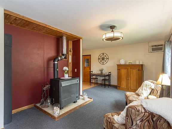 Garage doorVariety of plantsNew windowsNewer carpetNewer roofGas water heaterLarge wood burning stove