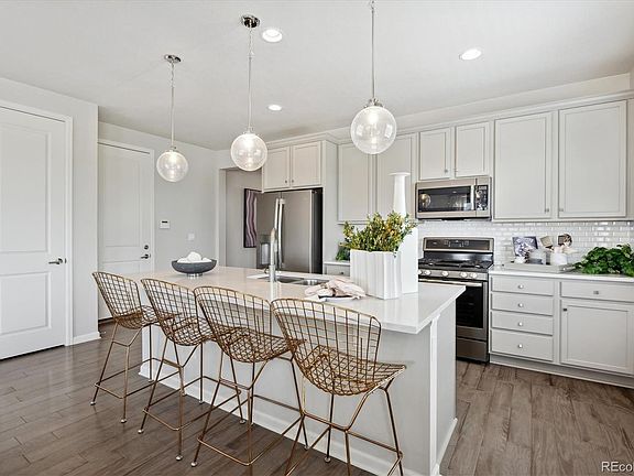 **!!FORMER MODEL!!** This ranch-style Alexandrite is waiting to fulfill every one of your needs! The great room welcomes you with a contemporary fireplace and flows into an open dining room, and offers views of the covered patio. A well-appointed kitchen is beyond and features a center island, ideal for casual meals and conversations. Three generous bedrooms and a shared bath make perfect accommodations for family and guests. The owner's suite flaunts a private bath and spacious walk-in closet. **Ask about our special offers. Call 303.850.5757 to schedule a tour today!**