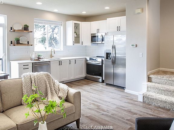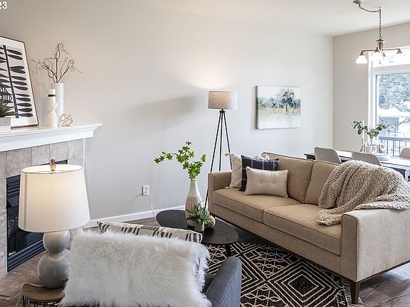 Beautifully upgraded end-unit townhome in the heart of Gladstone! MOVE IN READY You'll love this quiet home and entertaining in your open concept living space. Features high ceilings with plenty of natural light, gas fireplace, fully updated kitchen with quartz countertops, SS appliances, including induction stove, new flooring and paint. Oversized master suite with dual vanity, large second bedroom, updated bathrooms, NEW AC and Water Heater 2022. Easy access to 1-205 and Mcloughlin Blvd.