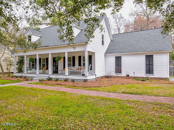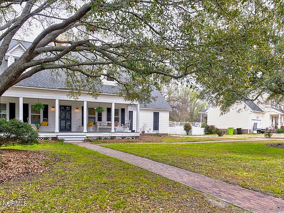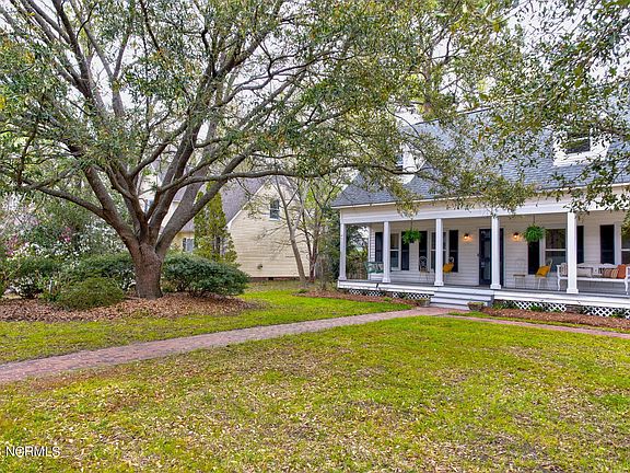 Beautiful cape cod situated on a large maturely landscaped property. Enjoy the rocking chair front porch with incredible views of majestic oak trees. The large fenced in back yard features a large open deck, raised garden beds, wired storage shed, fish pond and lovely iron gates. The downstairs features the owner's suite, large living room with a fireplace, open sitting area adjacent to the eat-in kitchen. Spacious laundry room , a full bath and a staircase to access the large bonus room (4th Bedroom). There is an additional staircase that leads you to two generous sized bedrooms that share a bath. Plenty of closet space and walk-in attic storage. The owner added new flooring in 2020 in several rooms, a new roof, new hot water heater and windows in 2021. All new stainless steel appliances including a Bosch dishwasher in 2022. Great Wilmington location and minutes to Wrightsville Beach, restaurants and shopping. NO HOA!