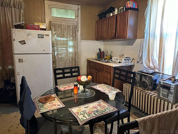 This home offers an eat-in kitchen along with two nice size bedrooms, one & a half baths and two additional rooms on the 3rd floor. There is an enclosed back porch with a fenced in back yard. Within 10 minutes from dining, shopping, hospital and more. Property is Sold AS-IS.