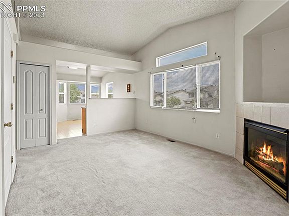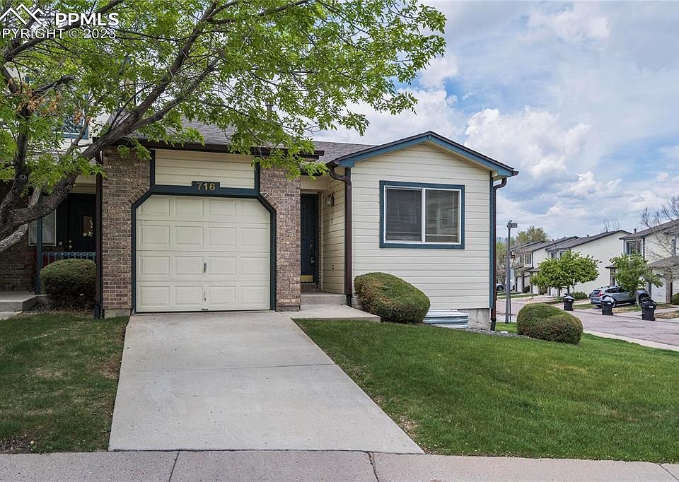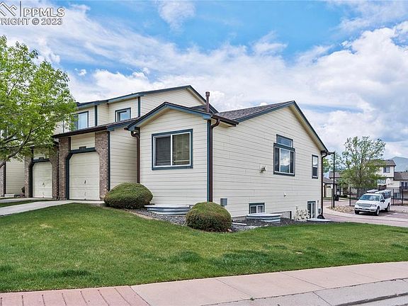 Located in the gated townhome community of Windjammer Pointe. This 2 bed, 1 bath townhome boasts endless possibilities to make it your own. The living room is open and bright with lots of natural light, vaulted ceilings and a gas fireplace. The kitchen is semi open to the living room and also features vaulted ceilings as well as a bay window. Both bedrooms have spacious closets and vaulted ceilings. The master walks out to a good sized deck. The unfinished basement features the laundry space and rough in for bathroom. This home is located on the corner with an attached 1 car garage and Pikes Peak views. The property grounds are very well maintained with a playground area and lots of green space.