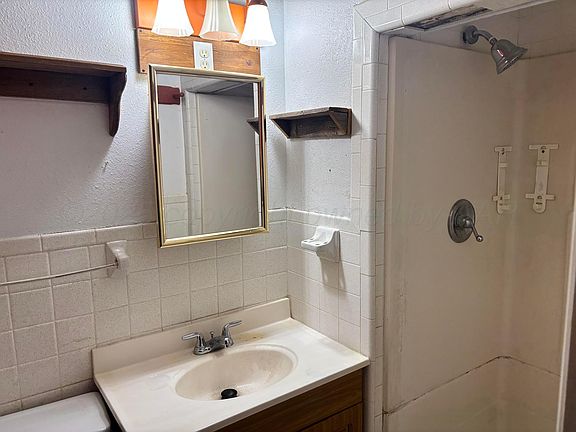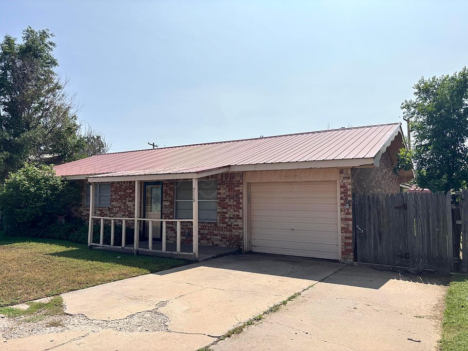 This 3 bedroom 2 bath home has plenty of space for everyone. The large den added on is a great addition to the home. It features a gas fireplace and built in office area. The home has a covered brick patio with outdoor lighting. It also has a large storage building with electricity run to it. It also has a one car garage with an additional car port in the back. Along with the added space, the home has a metal roof, per the seller, replaced sewer and gas lines, central heat and air, and a concrete storm cellar. The garage leads right into the laundry room, then into the kitchen with an added in dining area. Schedule your appointment today.