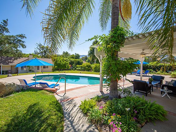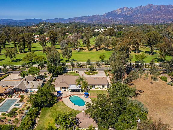 Proximity to the Ojai Valley Inn and Spa and Golf Course views make this Beautiful Custom Estate on over half an acre with saltwater pool and private Guest House, a rare offering. Lovely Stone Entry and Circular Driveway welcome you to this impressive home, designed for entertaining with generous, oversized rooms and a floor plan maximizing privacy. One of the few residences on the Entrance Road to Ojai Valley Inn and Spa. Offering 3 Bedrooms, 4 Bathrooms, private Office or Den, formal Living and Dining room, large inviting Great room and gorgeous gourmet kitchen with beautiful granite, quality custom wood cabinetry, and Subzero, Wolf, Viking and Miele appliances. Luxurious and spacious Master Suite and Bath offer 2 large walk-in closets one of them massive and inviting pool access to enjoy morning coffee or a late-night swim. The Great room, Kitchen and Breakfast area, as well as all bedrooms, open out to private grounds including the sparkling pool. Expansive covered pergola patio extends living areas to lush greenery, pool, outdoor entertainment area, and built-in barbeque. The Separate Guest House has 1 Bedroom, private Den or Office, a Full Kitchen and Living Room with Fireplace and it's own discrete driveway. Your guests may never want to leave.
