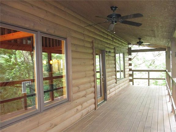 Tons of natural light bounces off the hardwood floors & pine walls of this awesome log cabin. 2 loft bedrooms & bath on the upper level overlook the great room with it's wood stove & open space. Kitchen affords tons of cupboards & tiled counter space. Master bedroom comes w/cedar lined closet, built-in dresser & a bath to die for. Lower level affords a plethora of possibilities w/full bath & large open space think bedroom, man cave, theater room. Safe room/storage area & laundry hookups. AMAZING LAND!
