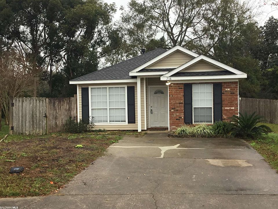 Move in ready 3 bedroom 2 bath home with fenced yard and patio located on a cul-de-sac. Laminated flooring throughout, newly painted with nice decorative paint colors, and gas water heater. Kitchen is nice with white and dark cabinets and all appliances are included plus washer and dryer. Located only minutes from Downtown Fairhope!