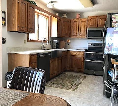 - Appliances: Electric Range/Oven, Refrigerator, Dryer, Washer, Range Hood, Water Filter, Water Softener Owned