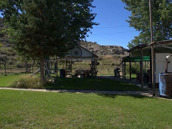 A small fixer upper older home on a 28,000 sq ft lot! A little piece of heaven tucked away against the badlands. Small single family home. Like living out of town. 2 bedrooms, 1 full bath, 1 half bath, kitchen, dining room, front entryway, sunroom. Unfinished basement. Basement has laundry room, a couple bonus rooms and root cellar. Huge lot with tons of space for a garden! The soil has been very well fertilized and was used to plant over 1500 hills of potatoes and other produce for many years. Garage with lots of storage and a mechanic's pit. Main garage has 3 other rooms attached with extra storage space. Carport and plenty of room to park an RV. covered patio area. Quiet neighborhood near elementary school and Whipkey Park. Sewer pipe from the home to the main city line was redone 3 years ago. New roof about 5 years ago. NO CONTRACT FOR DEED, RENT TO OWN or RENTING. Sold as is.