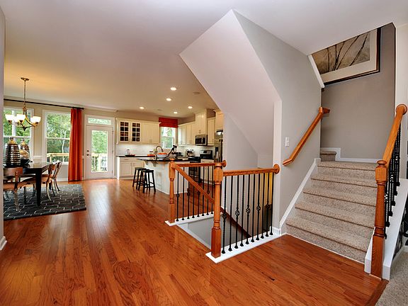 Former Model!!Open flowing floor plan, lives like a single family home with large rooms & bright spaces. Great kitchen for preparing food and entertaining around center island. Large bonus room on lower floor with access to covered patio and bathroom. 9"ceilings, curved staircase, wrought-iron stair rail, extra storage space in garage. Walking trail from this community lead directly into Apex community park and Lake Pine walking trail. 2nd floor deck off main area with view of mature trees. Many extras.