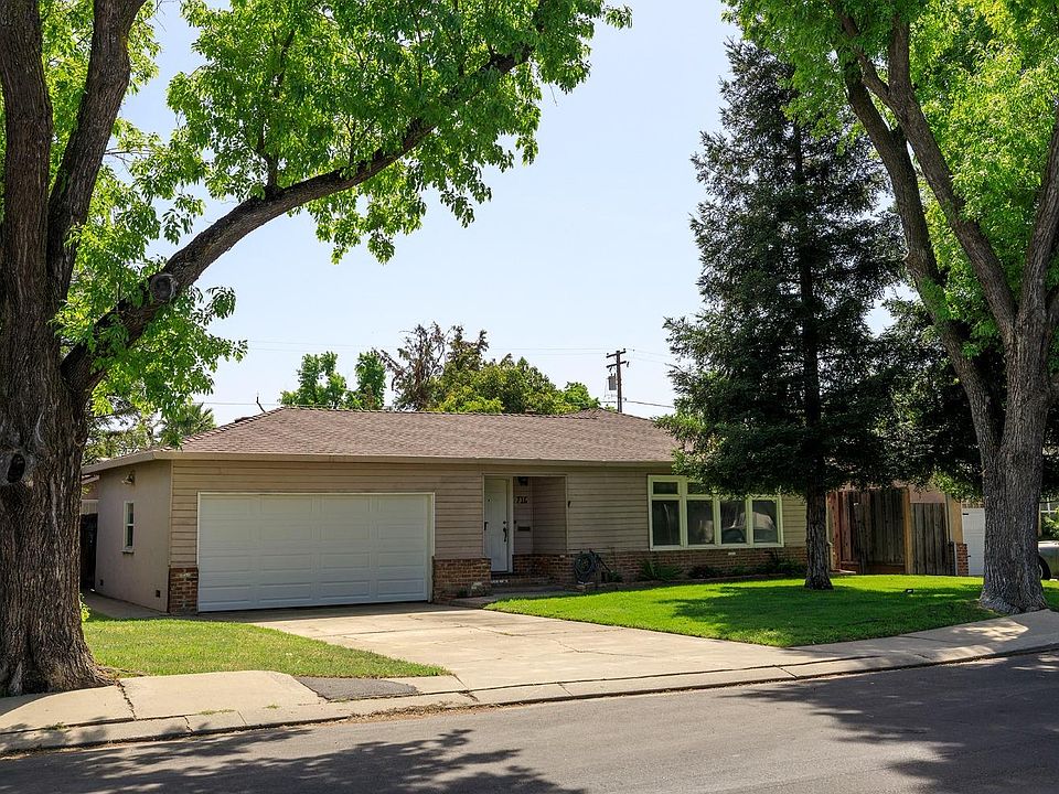 Great Central Modesto location on a shady tree lined street. Attractive Hardwood floors, Brick fireplace and multiple skylights and 9' foot wood and beam ceilings in the family room. The main home is 1656 sq ft w/ Central H/A. There is also a 1 bedroom with a full bath and Kitchenette that could be used as an ADU / inlaw quarters with a separate entrance. There are dual paned windows, a Newer roof (2018), a new garage door and fresh interior paint. Priced well given the square footage and the inlaw apartment.
